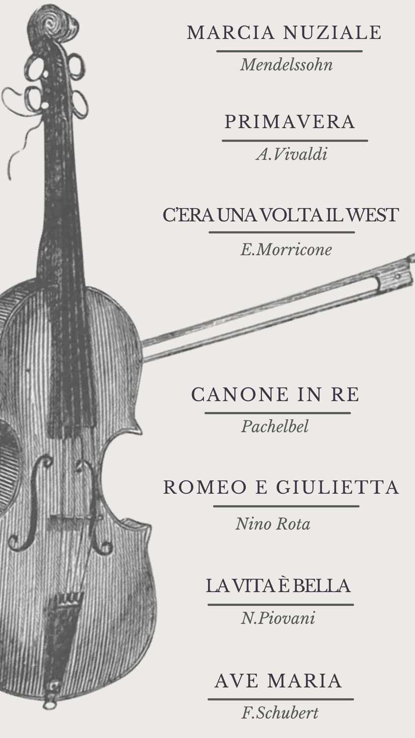 - romantiche note pervadono l'aria: dall'ingresso della sposa al primo bacio da marito e moglie. Un'emozione dietro l'altra...